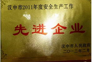 - 2012年2月授予漢中市2011年度安全生產工作先進企業(yè)
