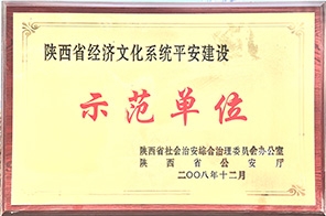 - 2008年12月陜西省經(jīng)濟文化系統(tǒng)平安建設示范單位