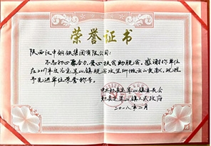 - 2008年2月授予榮譽證書