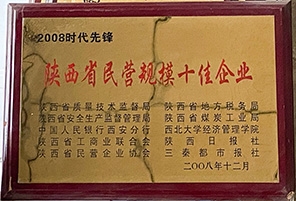 - 2008年12月陜西省民營規(guī)模十佳企業(yè)